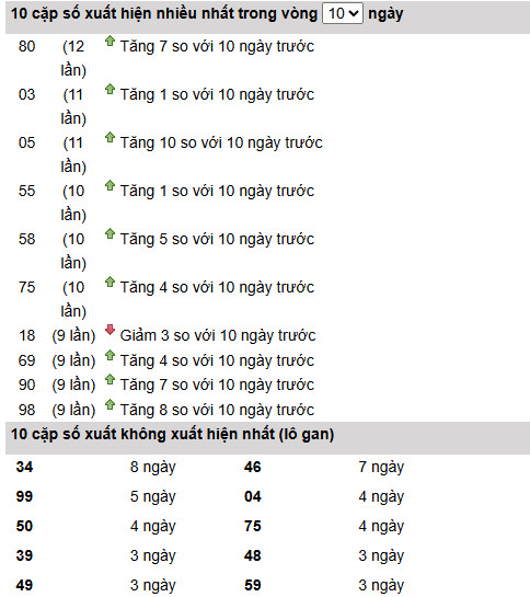 Để giúp bạn "chốt số" XSMN thứ 2 hiệu quả hơn, chúng tôi đã tổng hợp và phân tích dữ liệu, mang đến những thống kê chi tiết về các cặp số xuất hiện trong thời gian gần đây. Tham khảo những thông tin này, bạn sẽ có thêm cơ sở để lựa chọn cặp số đẹp nhất, ưng ý nhất cho mình trong buổi tối hôm nay. Chúc bạn may mắn!