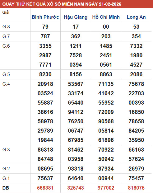 Hôm nay, chuyên trang sxmb.vn sẽ đưa ra những dự đoán XSMN ngày 21/2/2026 chính xác. Cùng các chuyên gia dự đoán xổ số miền nam các tỉnh XSHCM - XSLA - XSBP - XSHG để tìm ra con số may mắn cho mình nhé!
