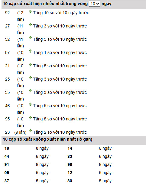 92 (12 lần, +10) → đứng đầu toàn bảng, tăng rất mạnh → số “nóng” rõ rệt.