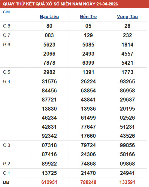 Phân tích XSMN - đài XSVT thứ 3 ngày 21/4/2026 với các mục chốt số đầu, đuôi giải đặc biệt, kết quả giải 8, lô xiên của đài xổ số Vũng Tàu với xác suất trúng cao