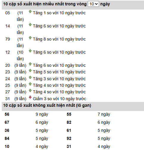 Trong thống kê 10 ngày gần nhất, nhóm số nổi bật có sự phân hóa rõ về nhịp chạy.