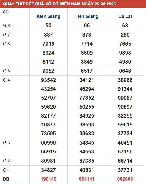 Phân tích XSMN - đài XSKG chủ nhật ngày 26/4/2026 với các mục chốt số đầu, đuôi giải đặc biệt, kết quả giải 8, lô xiên của đài xổ số Kiên Giang với xác suất trúng cao