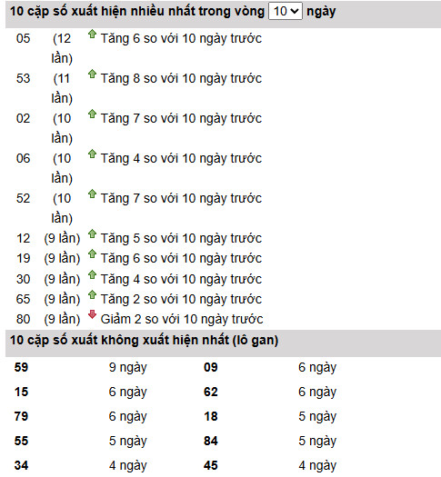 Để giúp bạn "chốt số" XSMN chủ nhật hiệu quả hơn, chúng tôi đã tổng hợp và phân tích dữ liệu, mang đến những thống kê chi tiết về các cặp số xuất hiện trong thời gian gần đây. Tham khảo những thông tin này, bạn sẽ có thêm cơ sở để lựa chọn cặp số đẹp nhất, ưng ý nhất cho mình trong buổi tối hôm nay. Chúc bạn may mắn!