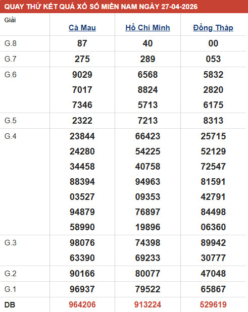 Tham khảo XSMN - đài XSHCM thứ 2 ngày 27/4/2026 với các mục chốt số đầu, đuôi giải đặc biệt, kết quả giải 8, lô xiên của đài xổ số Hồ Chí Minh với xác suất trúng cao