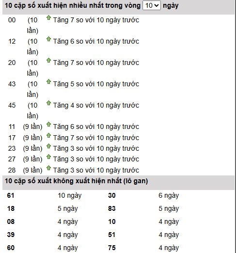 Ở chiều ngược lại, 61 đang là cặp gan cao nhất khi 10 ngày chưa xuất hiện, thuộc nhóm gan sâu và đáng lưu ý để ghép kèm dàn chính.