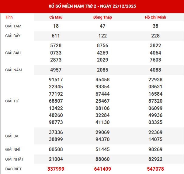 Tham khảo XSMN - đài XSHCM thứ 2 ngày 22/12/2025 với các mục chốt số đầu, đuôi giải đặc biệt, kết quả giải 8, lô xiên của đài xổ số Hồ Chí Minh với xác suất trúng cao