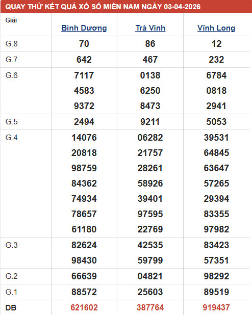 Phân tích XSMN - đài XSBD thứ 6 ngày 3/4/2026 với các mục chốt số đầu, đuôi giải đặc biệt, kết quả giải 8, lô xiên của đài xổ số Bình Dương với xác suất trúng cao