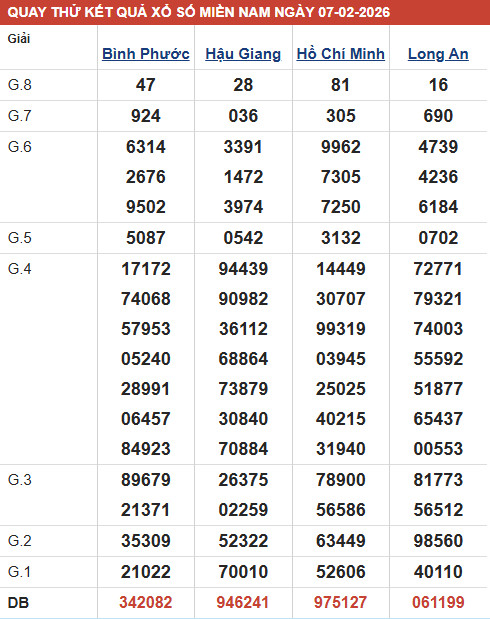 Hôm nay, chuyên trang sxmb.vn sẽ đưa ra những dự đoán XSMN ngày 7/2/2026 chính xác. Cùng các chuyên gia dự đoán xổ số miền nam các tỉnh XSHCM - XSLA - XSBP - XSHG để tìm ra con số may mắn cho mình nhé!