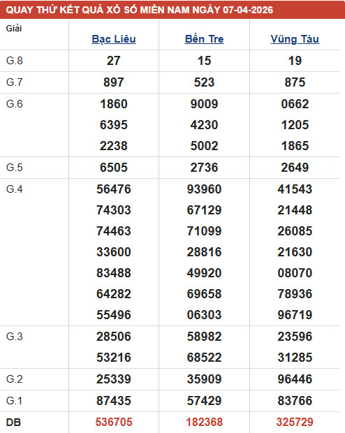 Phân tích XSMN - đài XSVT thứ 3 ngày 7/4/2026 với các mục chốt số đầu, đuôi giải đặc biệt, kết quả giải 8, lô xiên của đài xổ số Vũng Tàu với xác suất trúng cao