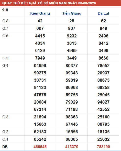 - Thống kê KQXS Kiên Giang chủ nhật ngày 8/3/2026