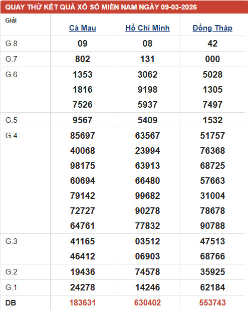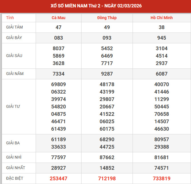 Tham khảo XSMN - đài XSHCM thứ 2 ngày 9/3/2026 với các mục chốt số đầu, đuôi giải đặc biệt, kết quả giải 8, lô xiên của đài xổ số Hồ Chí Minh với xác suất trúng cao