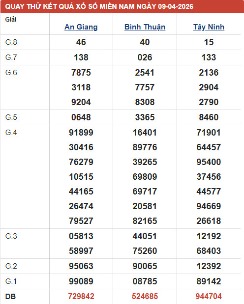 Dự đoán XSMN ngày 9/4/2026 - Thống kê XSMN thứ 5 tối nay - Cùng các chuyên gia phân tích các đài XSAG - XSTN - XSBTH mở thưởng ngày 9/4/2026.