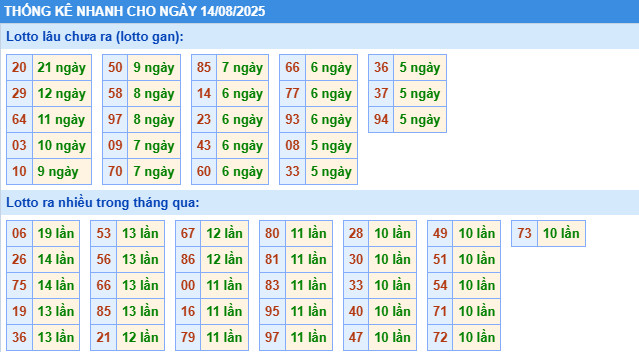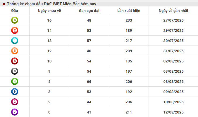 Thống kê miền Bắc nhanh ngày 15/8/2025