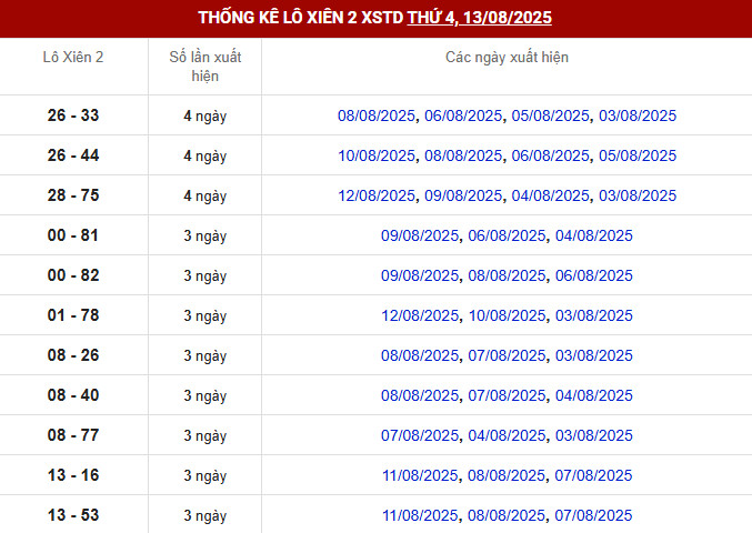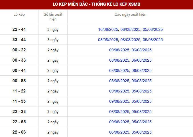 ⇒ Xem thêm: Bảng thống kê tần suất lô miền Bắc chi tiết.