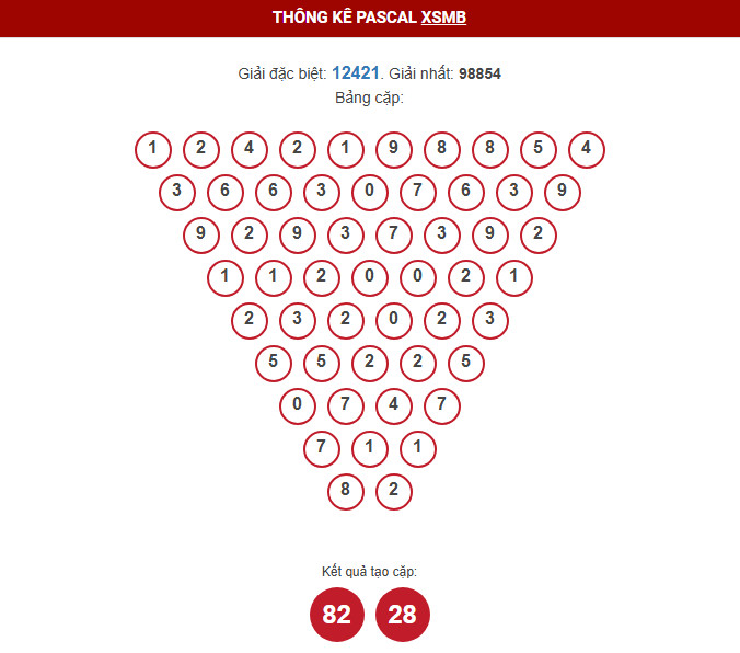 - Dựa vào thống kê Pascal, tham khảo cặp số đặc biệt dễ ra : 82 - 28