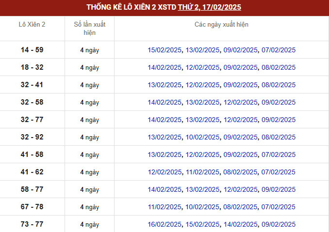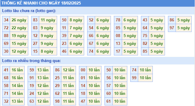 Thống kê miền Bắc nhanh ngày 18/2/2025