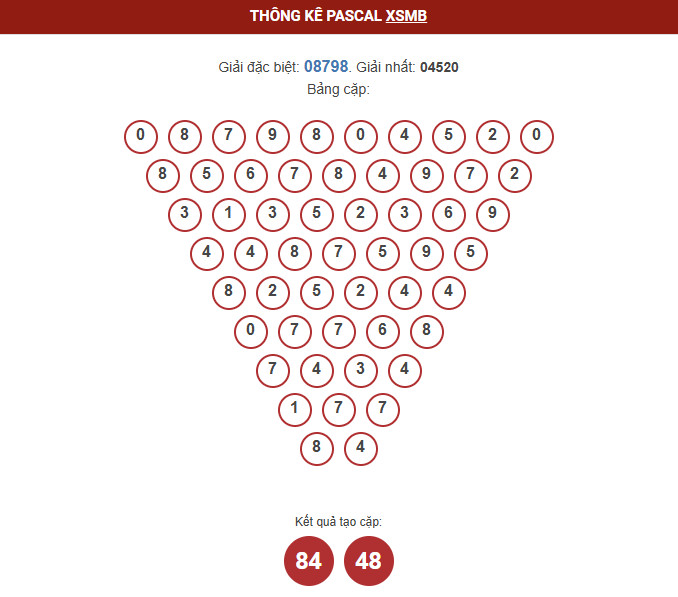 - Dựa vào thống kê Pascal, phân tích cặp số đặc biệt dễ ra : 84 - 48