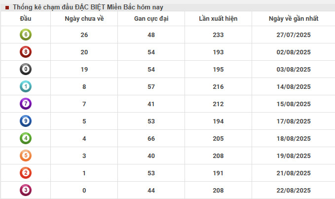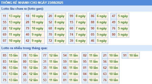 Thống kê miền Bắc nhanh ngày 23/8/2025
