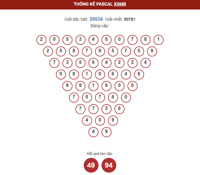 - Dựa vào thống kê Pascal, tham khảo cặp số đặc biệt dễ ra : 49 - 94