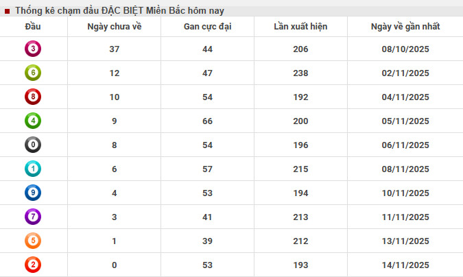 Thống kê chạm đầu đặc biệt XSMB 16/11/2025 hôm nay