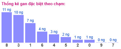 Thống kê cho thấy chạm đề lâu chưa xuất hiện nhất là chạm 8 (bao gồm 19 cặp số có chứa số 8), đã 11 ngày chưa ra.