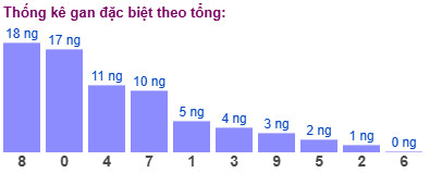 Thống kê cho thấy tổng đề lâu chưa xuất hiện nhất là tổng 8 (bao gồm 10 cặp số: 08, 17, 26, 35, 44, 53, 62, 71, 80, 99) đã 18 ngày chưa ra.