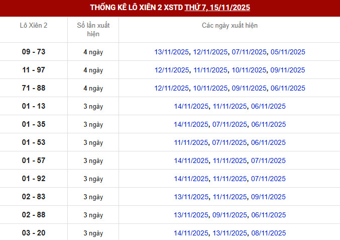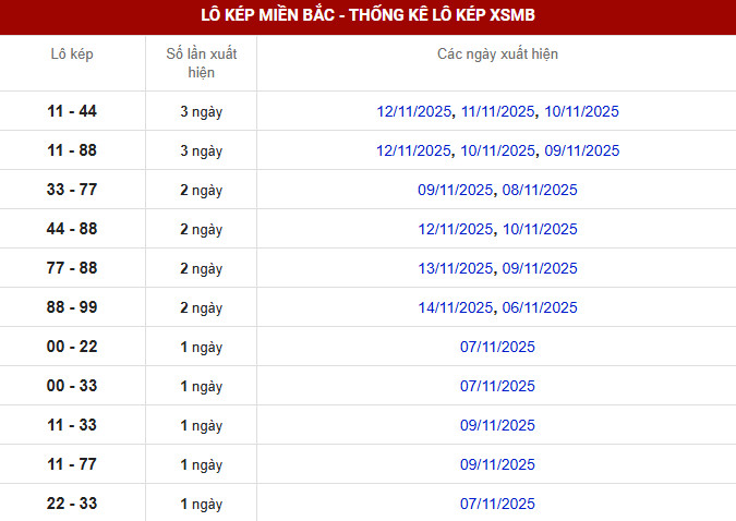 ⇒ Xem thêm: Bảng thống kê tần suất lô miền Bắc chi tiết.