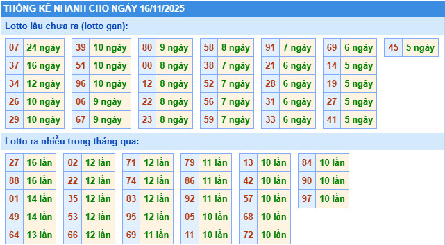 Thống kê miền Bắc nhanh ngày 16/11/2025