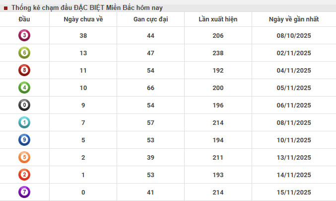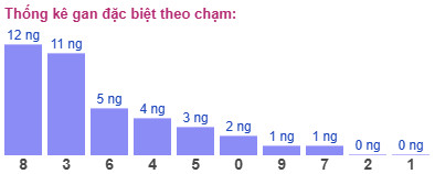 Thống kê cho thấy chạm đề lâu chưa xuất hiện nhất là chạm 8 (bao gồm 19 cặp số có chứa số 8), đã 12 ngày chưa ra.