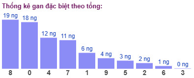 Thống kê cho thấy tổng đề lâu chưa xuất hiện nhất là tổng 8 (bao gồm 10 cặp số: 08, 17, 26, 35, 44, 53, 62, 71, 80, 99) đã 19 ngày chưa ra.