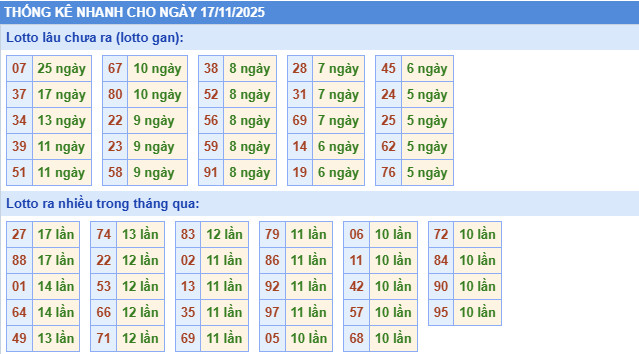 Thống kê miền Bắc nhanh ngày 17/11/2025