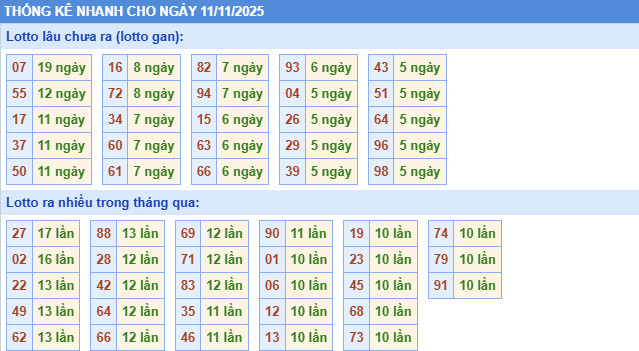 Thống kê miền Bắc nhanh ngày 11/11/2025
