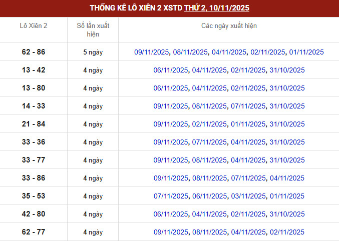 - Xiên 2: (64‑86)(13‑35)(42‑80)(88‑62)