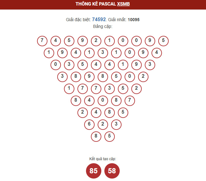 - Dựa vào thống kê Pascal, tham khảo cặp số đặc biệt dễ ra : 85 - 58