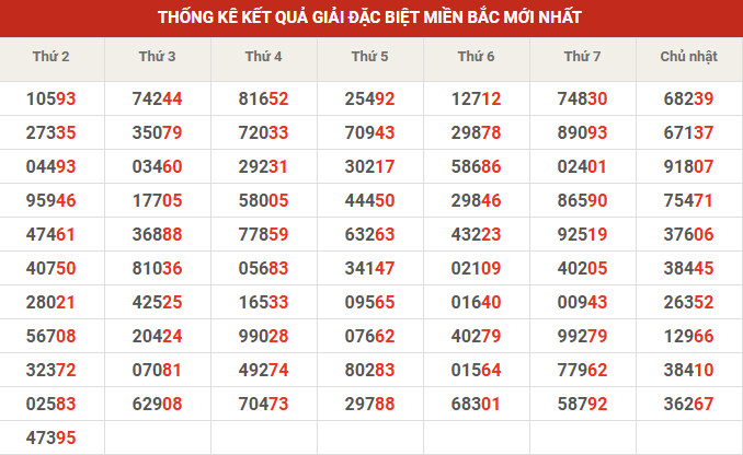 Thống kê giải đặc biệt 10' tuần gần đây