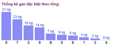 Thống kê cho thấy tổng đề lâu chưa xuất hiện nhất là tổng 5 (bao gồm 10 cặp số: 05, 14, 23, 32, 41, 50, 69, 78, 87, 96) đã 31 ngày chưa ra.