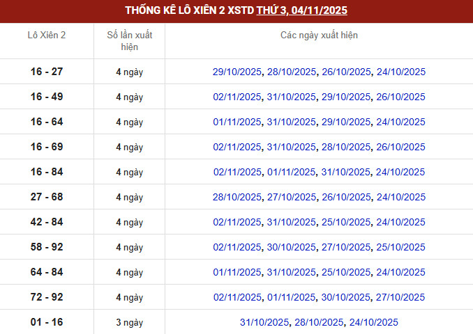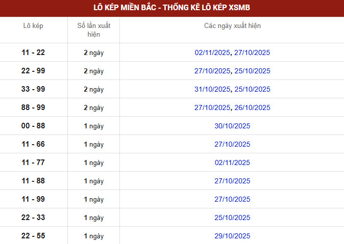⇒ Xem thêm: Bảng thống kê tần suất lô miền Bắc chi tiết.