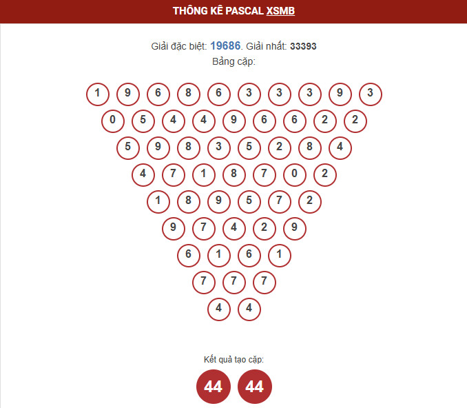 - Dựa vào thống kê Pascal, tham khảo cặp số đặc biệt dễ ra : 44