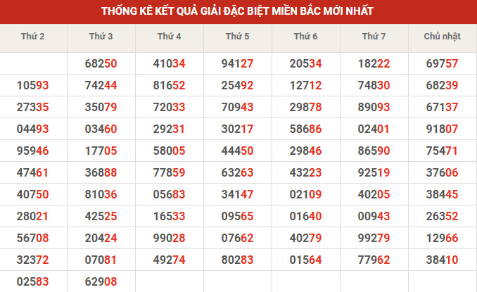 Thống kê giải đặc biệt 10' tuần gần đây