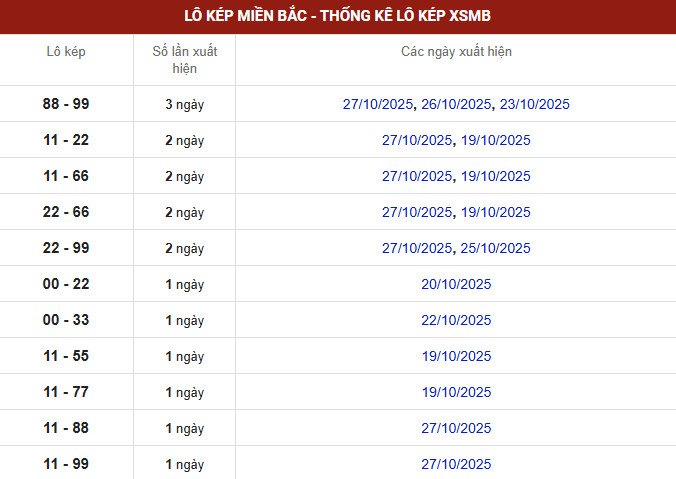⇒ Xem thêm: Bảng thống kê tần suất lô miền Bắc chi tiết.