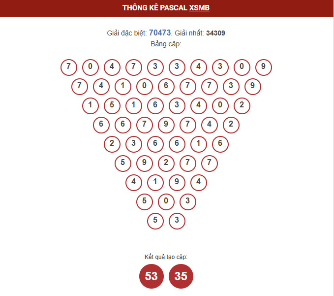 - Dựa vào thống kê Pascal, tham khảo cặp số đặc biệt dễ ra : 53 - 35