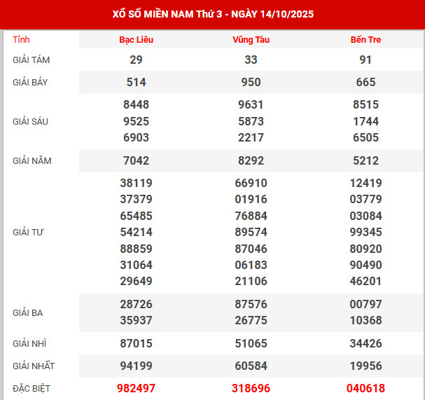 Trước khi cùng các chuyên gia tham khảo XSMN ngày 21/10/2025 của chuyên trang https://sxmb.vn, thì chúng tôi mời các bạn theo dõi lại KQXSMN mở thưởng thứ 3 tuần trước dưới đây nhé: